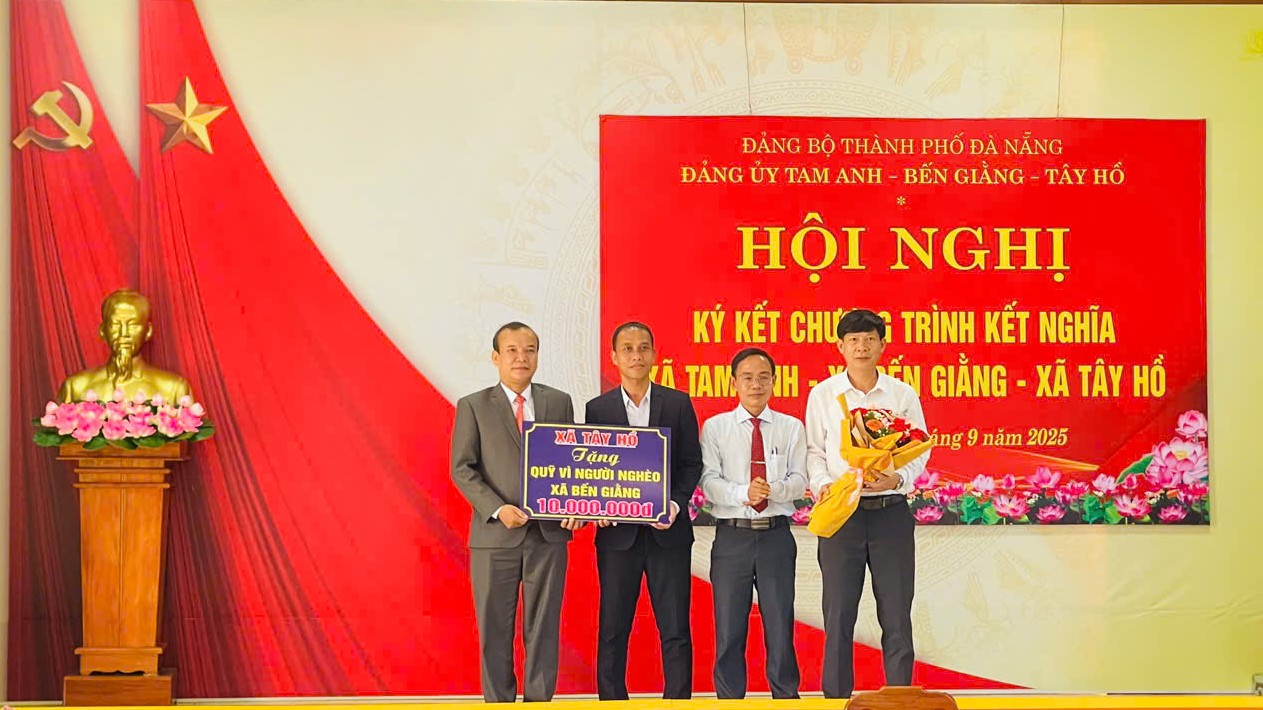 Dịp này, Đảng ủy xã Tây Hồ trao tặng 10 triệu đồng quỹ Vì người nghèo xã Bến Giằng; Đảng ủy xã Tam Anh tặng quà cho Đảng ủy xã Bến Giằng.