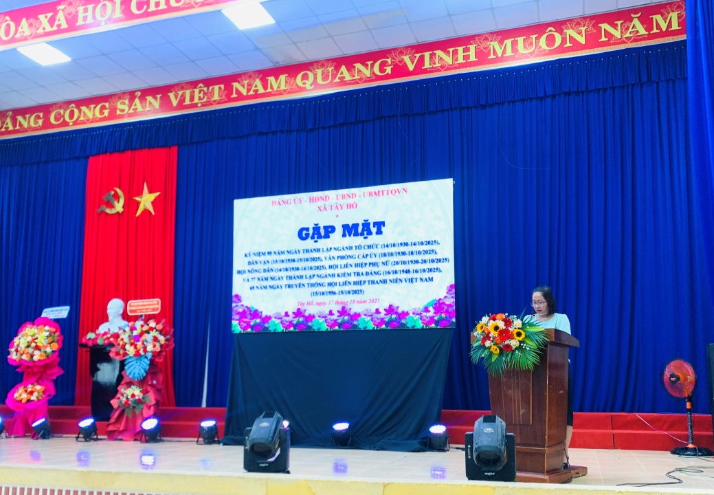 Phát biểu tại buổi gặp mặt, đồng chí Huỳnh Xuân Chính – Bí thư Đảng ủy, Chủ tịch HĐND xã Tây Hồ nhấn mạnh: “Đây là dịp để tri ân, tôn vinh những đóng góp to lớn của các thế hệ cán bộ, đảng viên, hội viên qua các thời kỳ; đồng thời khơi dậy niềm tự hào, tinh thần đoàn kết, trách nhiệm để tiếp tục xây dựng hệ thống chính trị xã Tây Hồ ngày càng vững mạnh, phát triển bền vững”.
