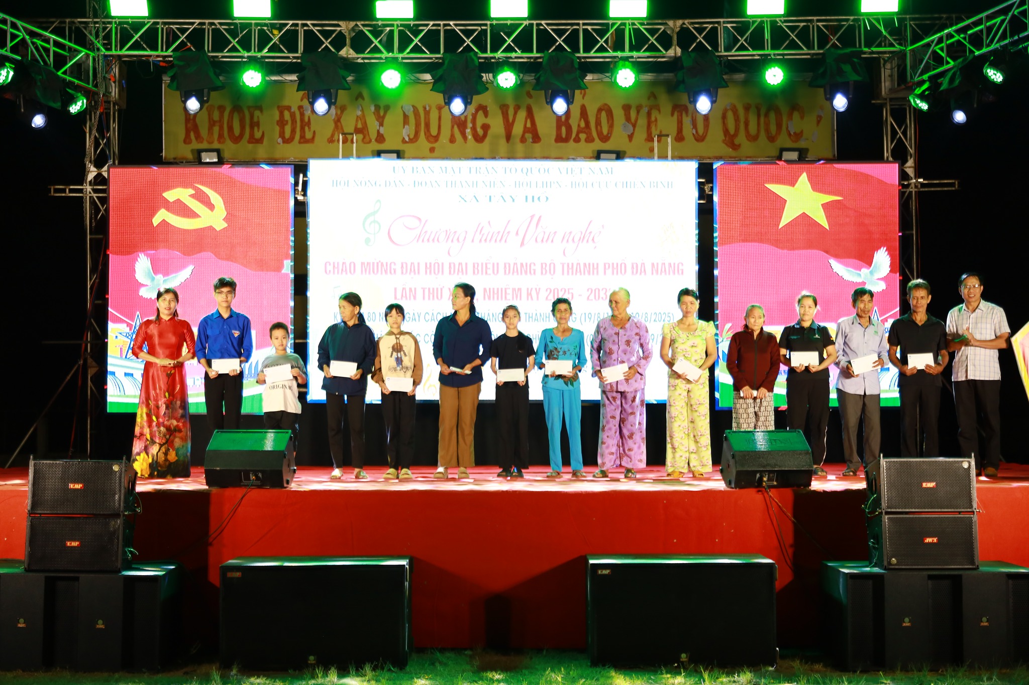 Tại chương trình, bên cạnh những tiết mục văn nghệ đặc sắc, Ban Tổ chức đã trao tặng 16 suất quà cho đoàn viên, hội viên có hoàn cảnh đặc biệt khó khăn trên địa bàn xã. Đây không chỉ là hành động nhân văn, mà còn là sự lan tỏa sâu sắc tinh thần sẻ chia, truyền thống tương thân tương ái của dân tộc ta, thể hiện sự thấm nhuần và thực hành theo tư tưởng, đạo đức, phong cách Hồ Chí Minh, để không ai bị bỏ lại phía sau trên con đường phát triển chung.