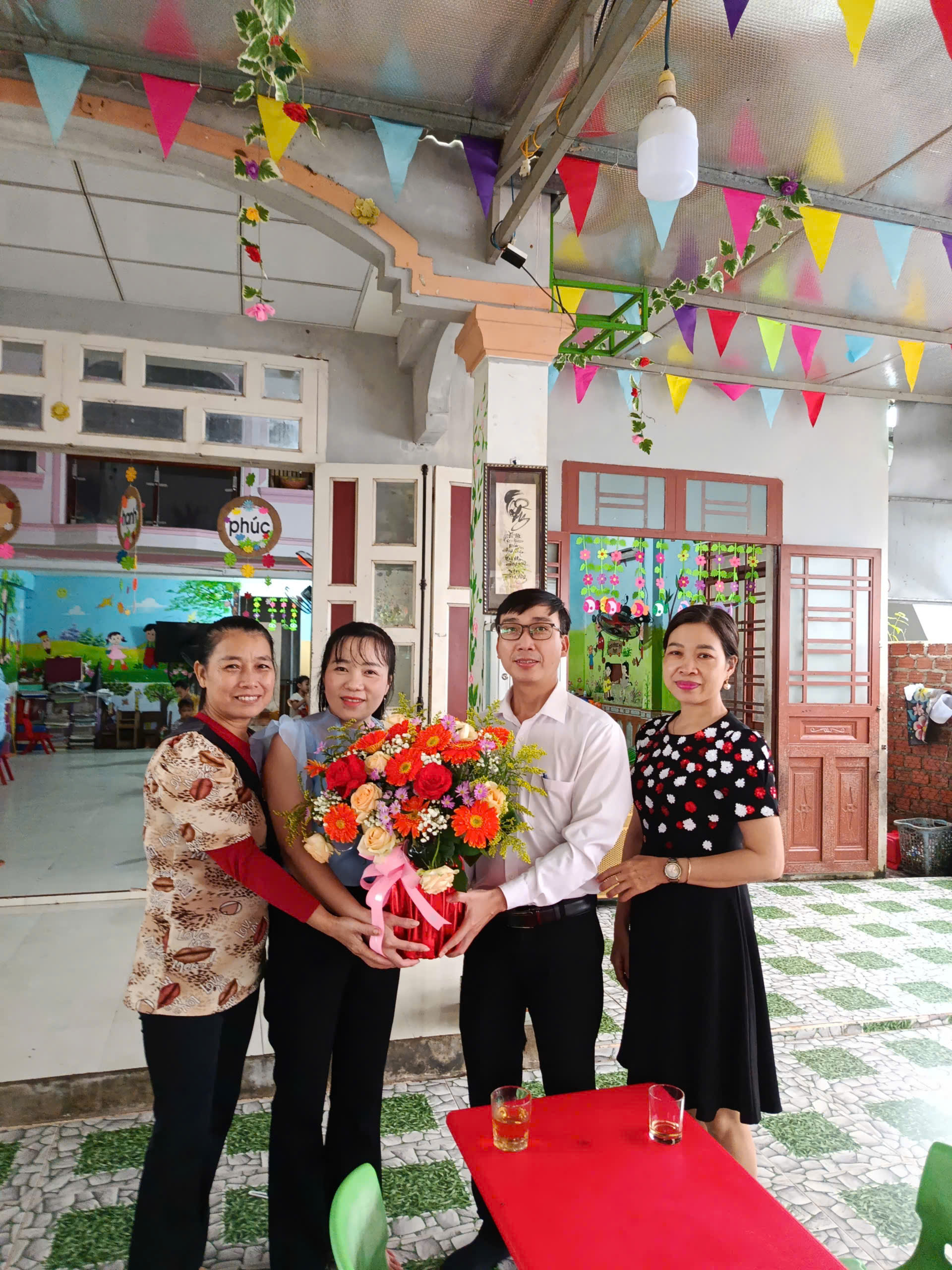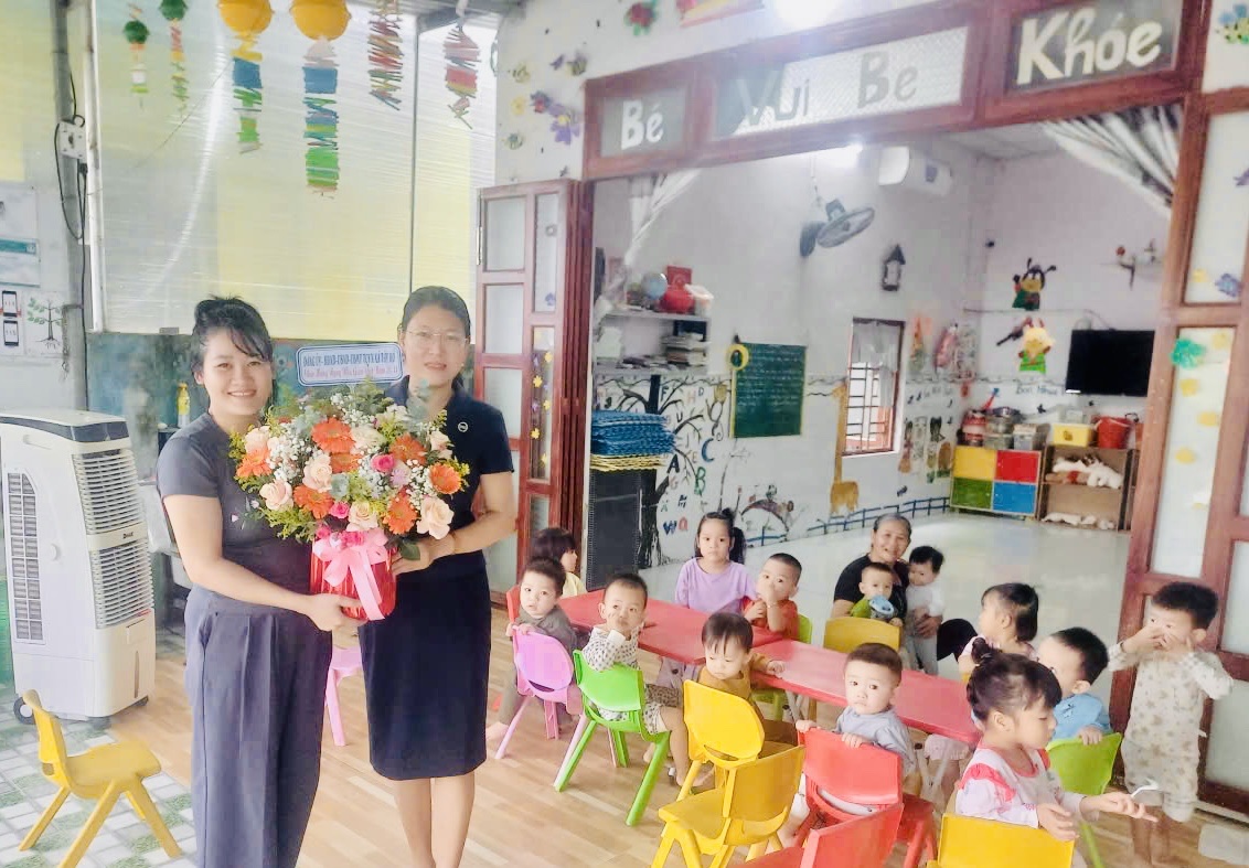 Đồng chí Phan Văn Ba – Phó Chủ tịch UBND xã tặng hoa chúc mừng các cơ sở Mầm non tư thục trên địa bàn