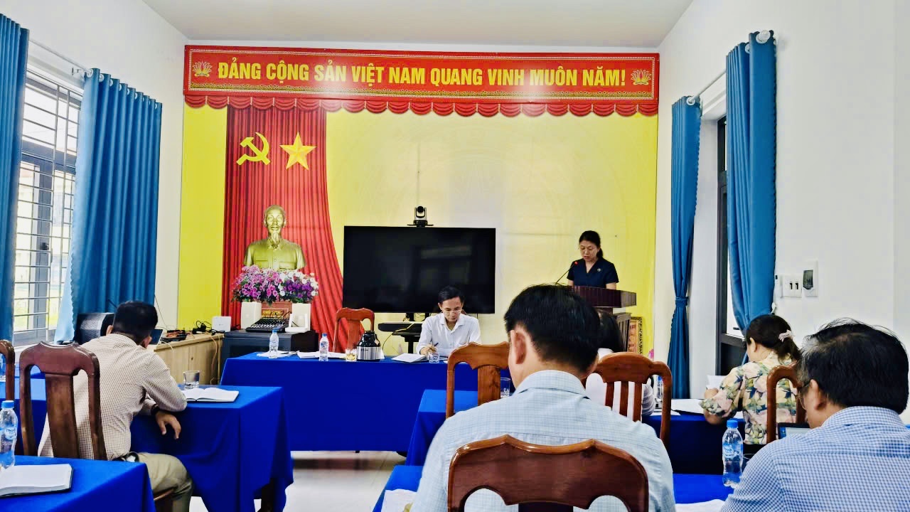 Đồng chí Bùi Thị Kim Hoàng – UVTV, Phó chủ tịch HĐND xã báo cáo nội dung tại cuộc họp