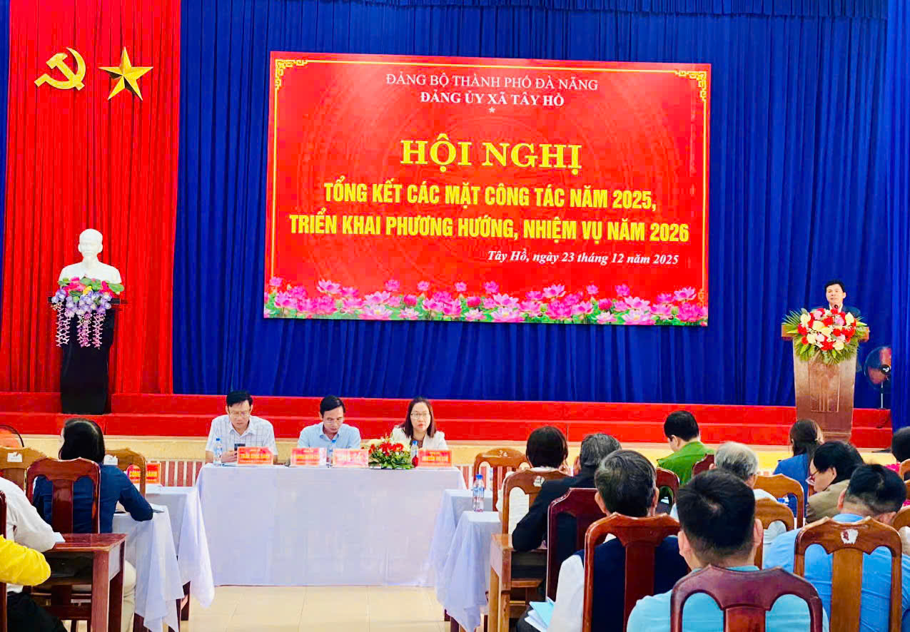 Phát biểu kết luận Hội nghị, đồng chí Huỳnh Xuân Chính - Bí thư Đảng ủy, Chủ tịch HĐND xã nhấn mạnh: năm 2025 là năm đầu tiên Đảng bộ xã Tây Hồ vận hành trong điều kiện mới sau sáp nhập; với tinh thần chủ động, đổi mới và quyết tâm cao, Đảng ủy đã tập trung lãnh đạo, chỉ đạo tháo gỡ khó khăn, ổn định tổ chức, tạo chuyển biến tích cực trên các lĩnh vực, qua đó khẳng định vai trò hạt nhân lãnh đạo của tổ chức Đảng ở cơ sở.