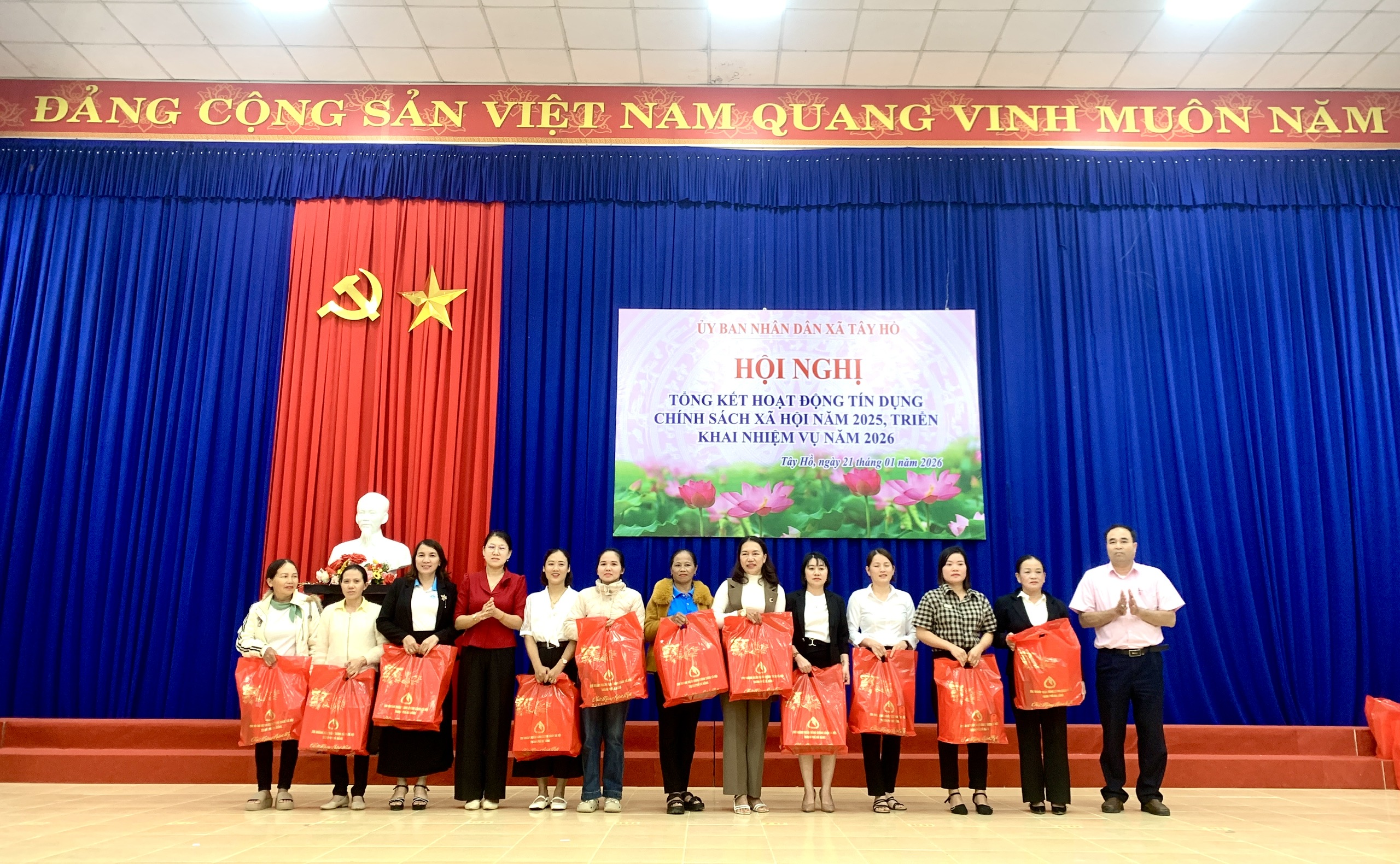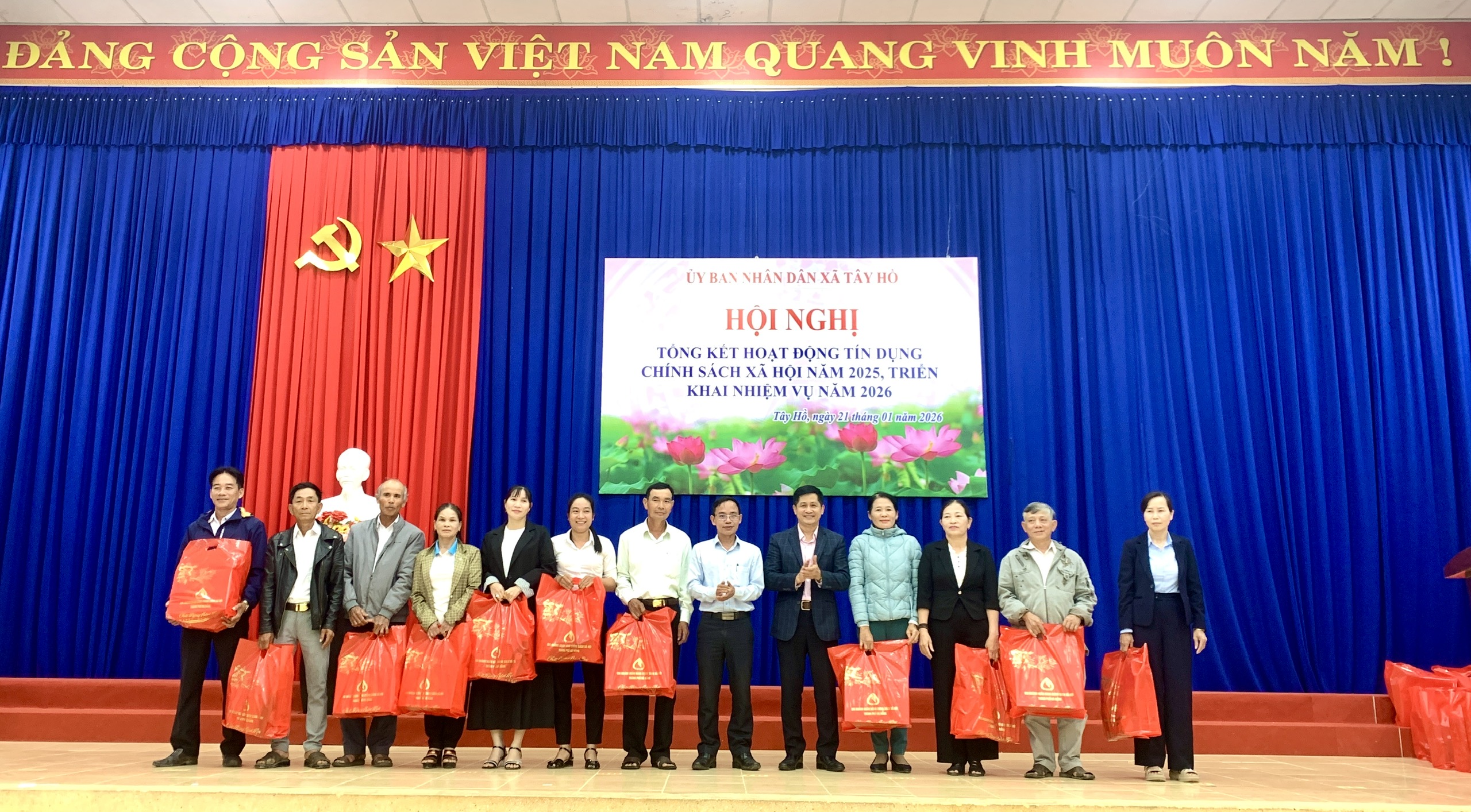 Dịp này, UBND xã Tây Hồ khen thưởng các tập thể và cá nhân đã có thành tích xuất sắc trong công tác tín dụng chính sách xã hội năm 2025. Chi nhánh Ngân hàng Chính sách xã hội thành phố đã trao 59 xuất quà tết của Ban đại diện HĐQT NHCSXH thành phố đến Tổ trưởng, Tổ Tiết kiệm và vay vốn trên địa bàn xã.