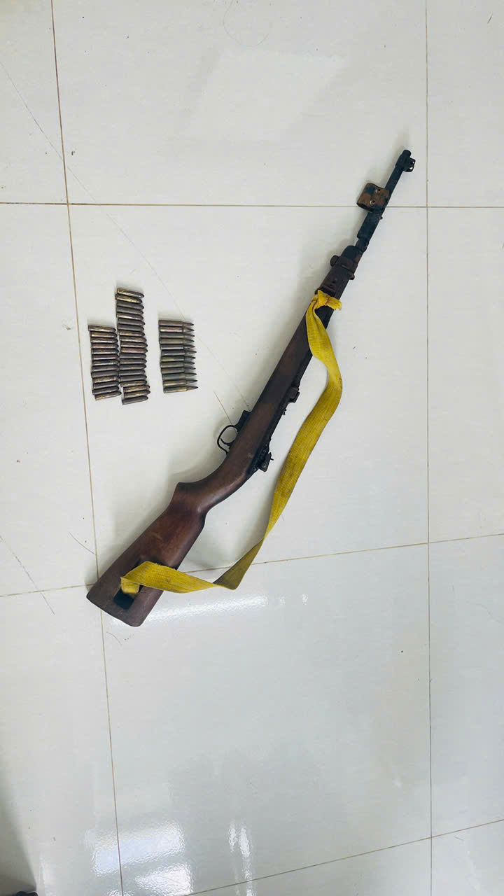 Theo đó, ông Đặng Văn Mai (sinh năm 1971, trú tại thôn Đại Đồng) đã chủ động đến trụ sở Công an xã để tự nguyện giao nộp một số vũ khí và nhiều đạn dược mà ông tìm thấy được trong quá trình canh tác. 01 khẩu súng quân dụng có tên gọi là Kbin, thân súng dài khoảng 82cm, được làm bằng kim loại màu đen, báng gỗ sẫm màu và có dây đeo vải màu vàng. 45 viên đạn quân dụng Gồm 33 viên đạn loại Kbin, 12 viên đạn loại AR15 và 02 hộp tiếp đạn.